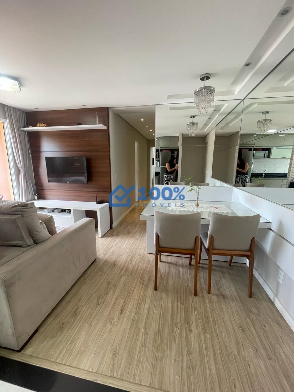 Piso laminado em ótimo estado na sala e quartos.
