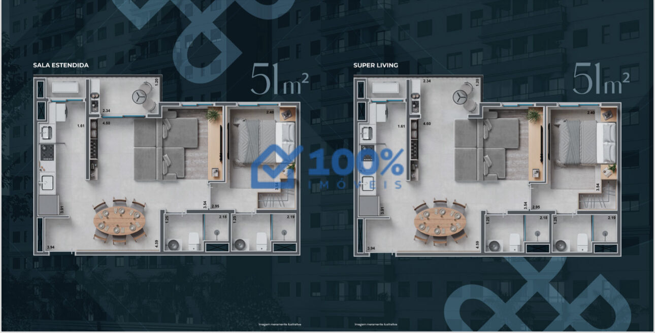 Apartamentos Disponíveis: 51m² e 60m².