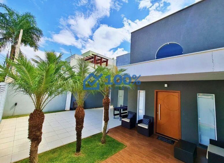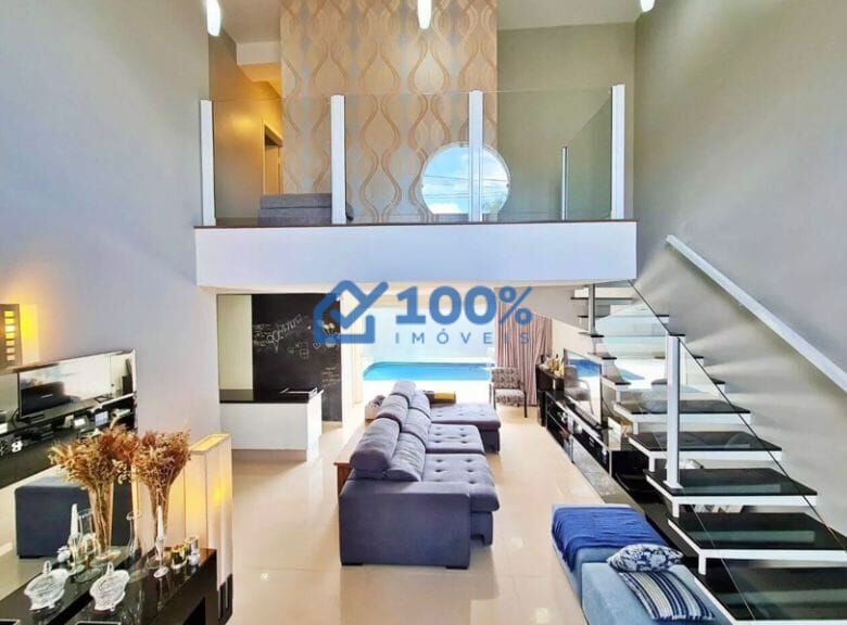 Possui terreno de 200m² e área construída total de 180m² distribuídos em 2 pavimentos sendo: térreo com ampla sala com pé direito de 5,65 metros de altura, sala de TV com vista para a piscina, toda integrada com a cozinha que tem uma amplo balcão que pode ser usado como mesa de café e buffet nas refeições com mais convidados. A área de serviço está anexa a cozinha, possui armários e saída independente para o corredor lateral. Parte íntima da casa está toda no pavimento superior acessado por uma moderna escada que chega inicialmente a um hall com vista para a sala e seguindo chegamos a distribuição dos dormitórios que são 3 confortáveis suítes com ar condicionado e 2 delas com linda vista para a fazenda que há nos fundos. O quintal dos fundos é um convite ao relaxamento com uma agradável piscina que é aquecida e com uma charmosa cascata, uma ducha e espaço para mesas, bem como um lavabo de apoio. Frente da casa com jardim e 4 vagas de garagem, sendo 2 cobertas. A casa conta ainda com portão eletrônico, cerca elétrica e câmeras de monitoramento.